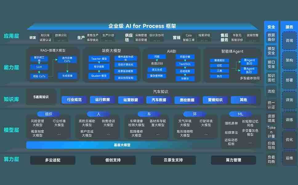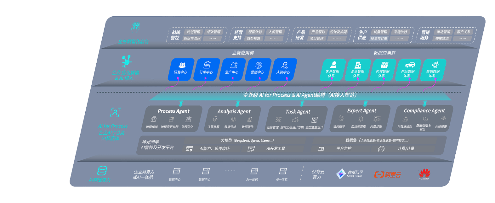 z6com尊龙凯时问学智车解决方案是一套基于AI技术的汽车行业智能化系统,,覆盖从底层算力到顶层AI应用的全栈方案。。。。方案由算力层、、模型层和应用层组成:算力层,,,方案支持多种一体机配置,,,具备云端灵活部署、、多云适配以及动态优化计算资源的能力;模型层,,,z6com尊龙凯时问学平台版提供了企业级AI应用一站式构建与管理平台,,,,支持基于后训练强化技术的汽车企业专属模型的训练、、、评测和运营;应用层,,,,z6com尊龙凯时问学DeepSeek版提供包括超级员工、、、、智能招采、、智能营销、、、、智能客服、、、、AI for BI等一系列解决方案,,,可助力汽车行业实现数字化转型,,,,让管理更智能、、、响应更敏捷。。。